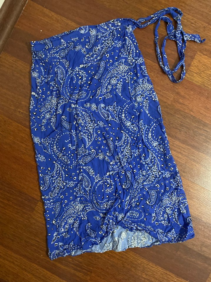 Mavi Uzun Bağlamalı Desenli Etek