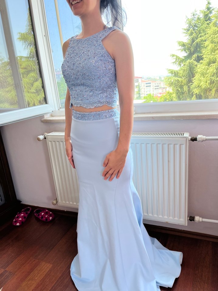 Mavi Uzun Balık Abiye Elbise