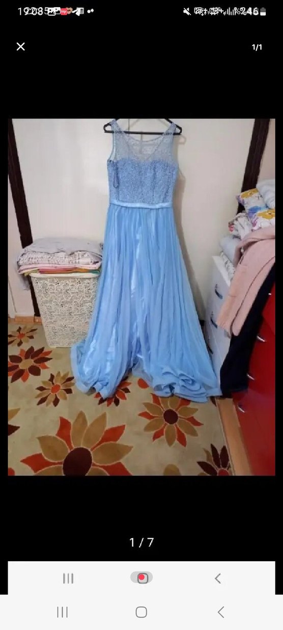 Mavi, uzun ve straplez yaka, kolsuz bohem tarzda, bol kesim kadın abiye elbise. Düğünler için uygun, desen içermeyen drapeli tasarım. Ciddi alicilar icin ayrintili fotograg aticam sadece 1 kere giyildi sifir diyebilirim