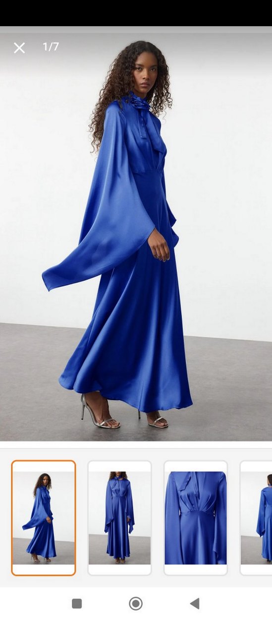 Mavi Uzun Drapeli Kadın Elbise 169 boy 80 kgye kadar oluyo