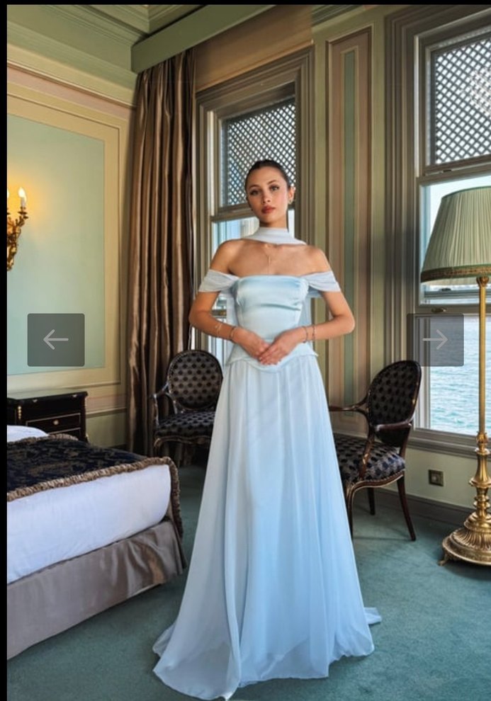 MAVİ Uzun Drapeli Straplez Kadın Abiye