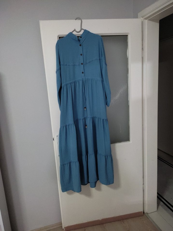 Mavi Uzun Elbise, Fırfırlı, Bohem Stil
