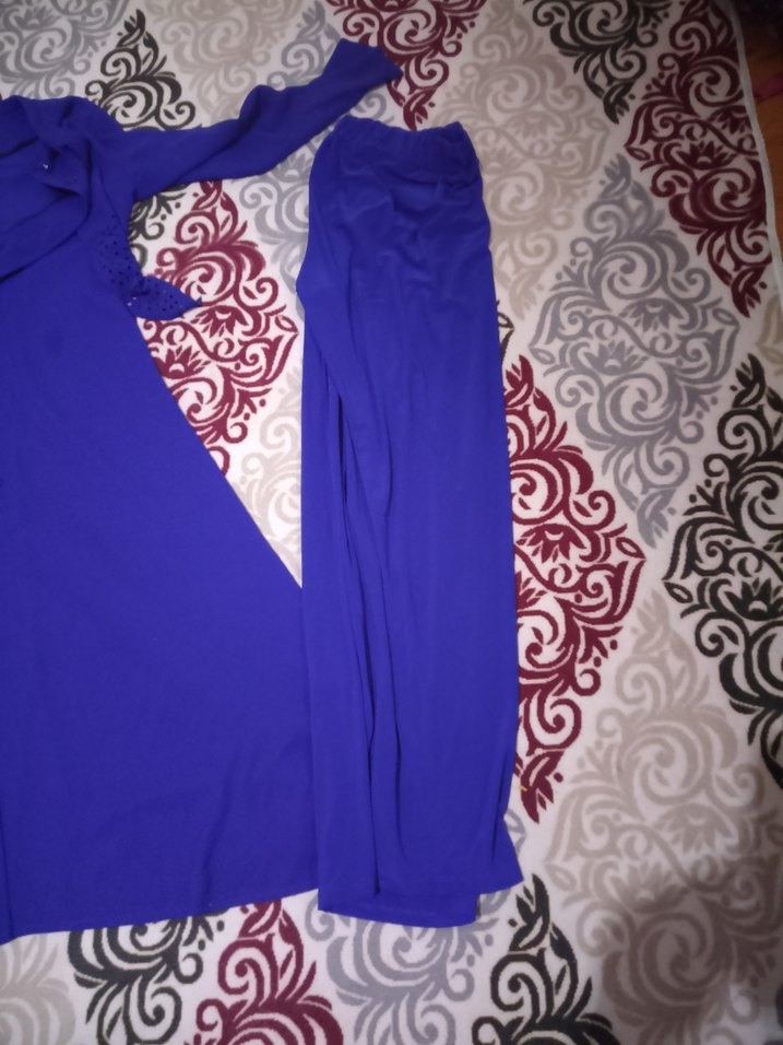 Uzun, askısız mavi hamile tunik, drapeli tasarımı ve normal kesimiyle dikkat çeker. Pürüzsüz sentetik kumaştan, kolu ve günlük kullanıma uygun, minimalist ve mütevazı stilde.