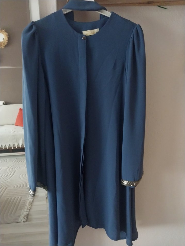 Mavi Uzun Kadın Takım Elbise