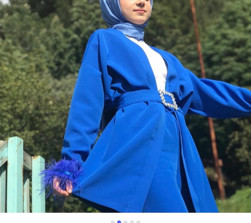 Kürk detaylı, uzun kollu, mavi kadın takımı. Parlak sentetik kumaştan, regular fit kesimde, notched lapel yakalı, günlük ve sokak stiline uygun.