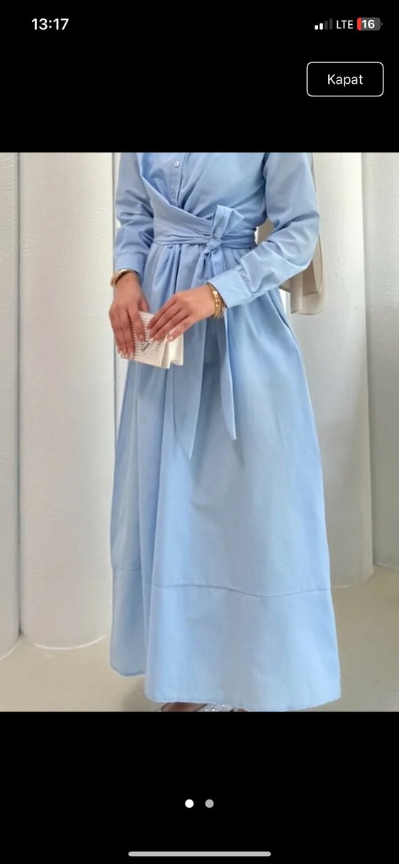 beyaz pembe rengkleri de mevcutPastel mavi renkte, yakalı ve askılı kollu uzun elbise. Kemerli ve regular fit tasarıma sahip, sentetik kumaştan üretilmiştir. Minimalist ve mütevazı tarz için uygundur.
