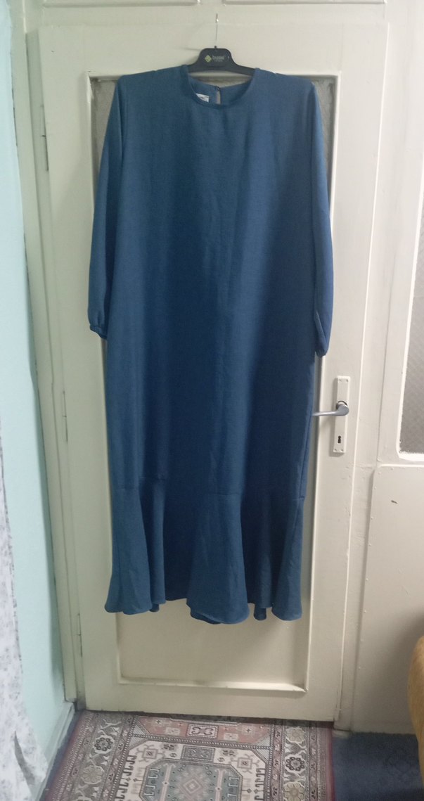 Mavi renkli, keten kumaştan uzun ve bol kesim elbise. Drapeli detaylar, uzun kollu ve yuvarlak yaka ile günlük kullanıma uygun minimal bir tasarım. İki kol arası: 58 cm Elbise Boyu: 140 cm Kol Boyu. : 58 cm Ürünü satın alarak DMD kas hastası Turan Ünal'ın tedavisine katkı sağlamış olacaksınız...(32)
