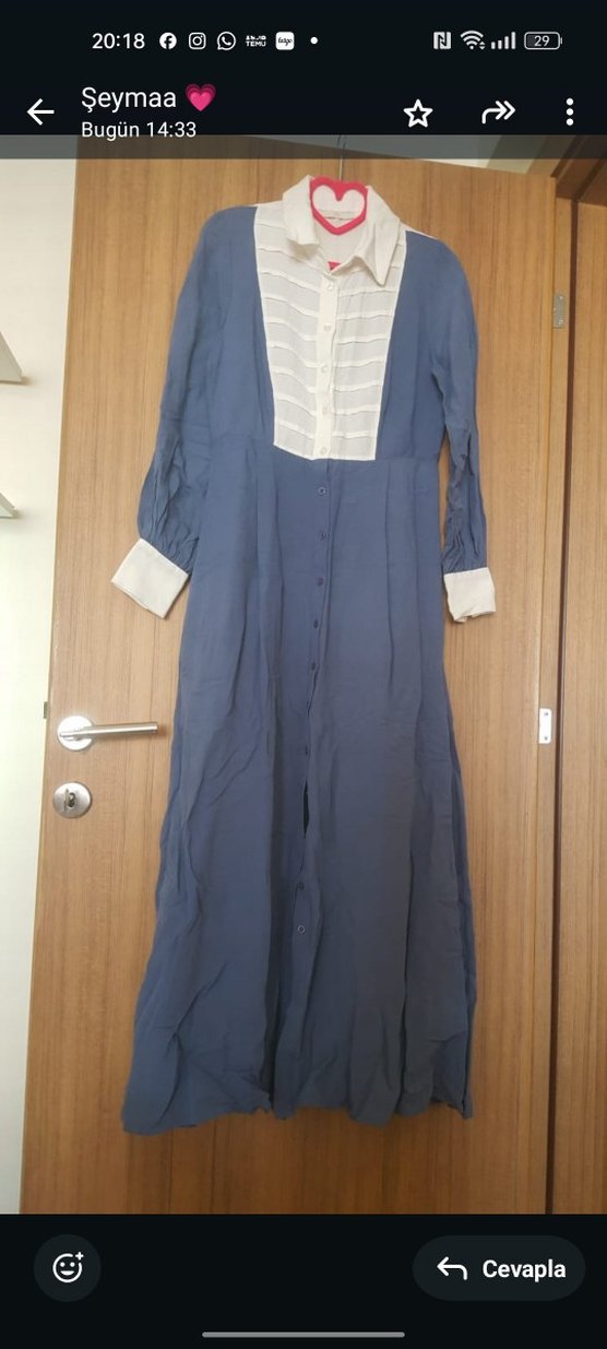 Mavi Uzun Keten Elbise, Pilili ve Bol Kesim