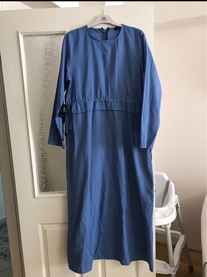 Mavi Uzun Keten Elbise, Salaş Kesim, Uzun Kollu
