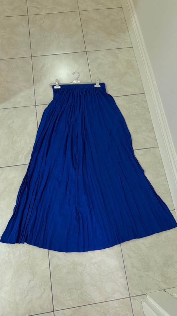 Mavi Uzun kırışık Etek