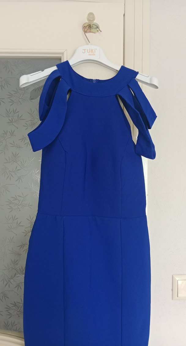 Mavi Uzun Kollarsız Drapeli Kadın Elbise