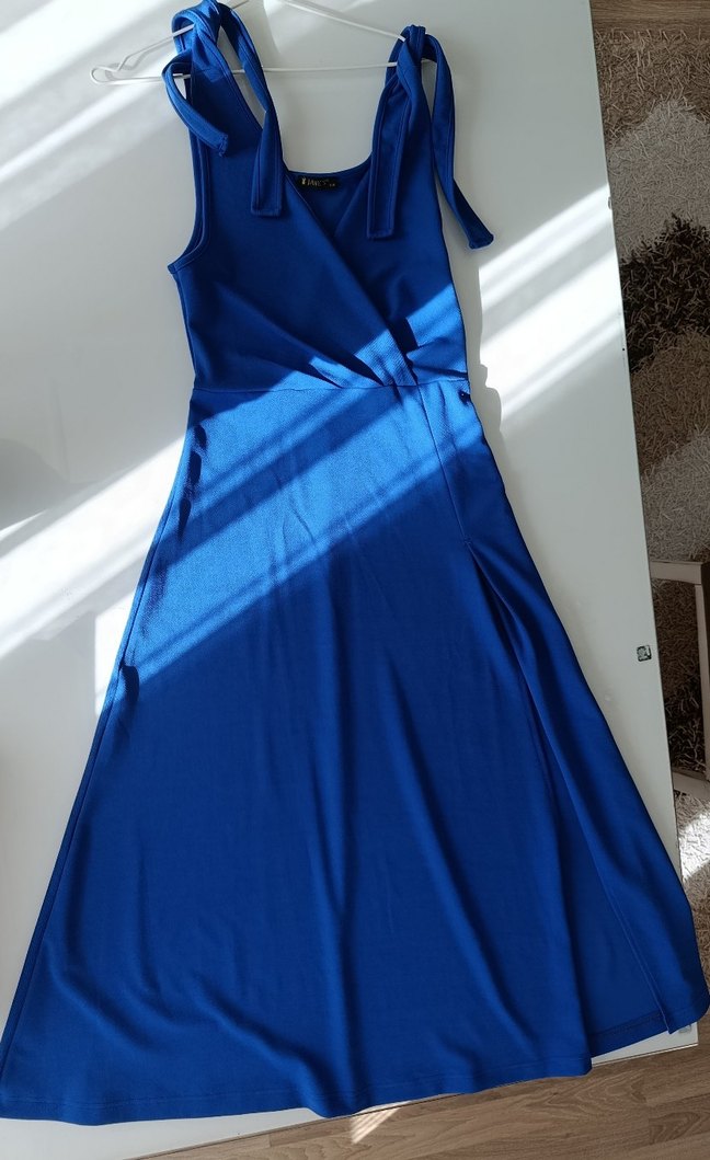 1_2 defa kullanıldı omuzdan bağlamalı yırtmaçlı ama yirtmaci çok açılmıyor S-M bedene uyumlu uzun elbise. şık ve günlük kullanıma uygun.