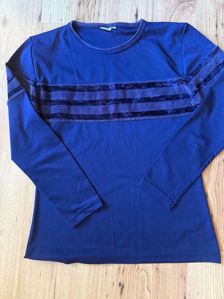 Uzun kollu, yuvarlak yaka ve fitted kesime sahip mavi tişört ,şerit detaylarıyla günlük sokak stiline uygun.iadesi yok