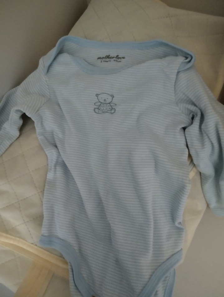 Pastel mavi renkte, uzun kollu ve yuvarlak yakalı bebek body. Pamuk kumaştan, önünde küçük ayıcık motifi var. Düğmeli tasarım içerir.