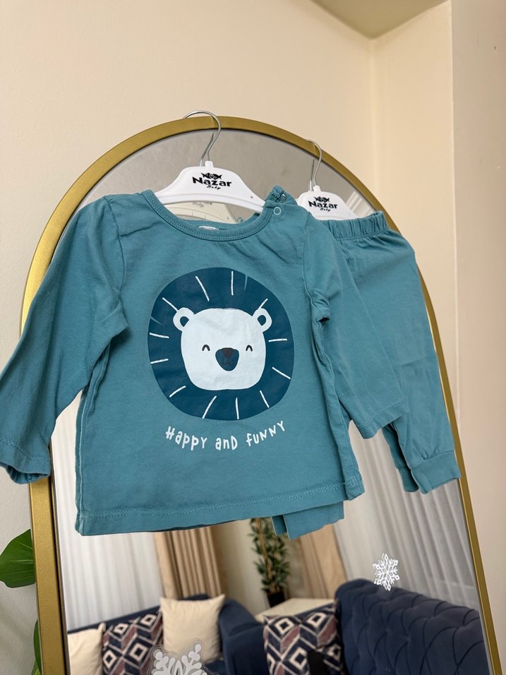 Mavi Uzun Kollu Bebek pijama takımı 6-9 ay