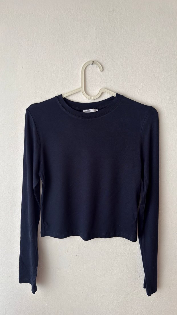 Mavi Uzun Kollu Crop Top