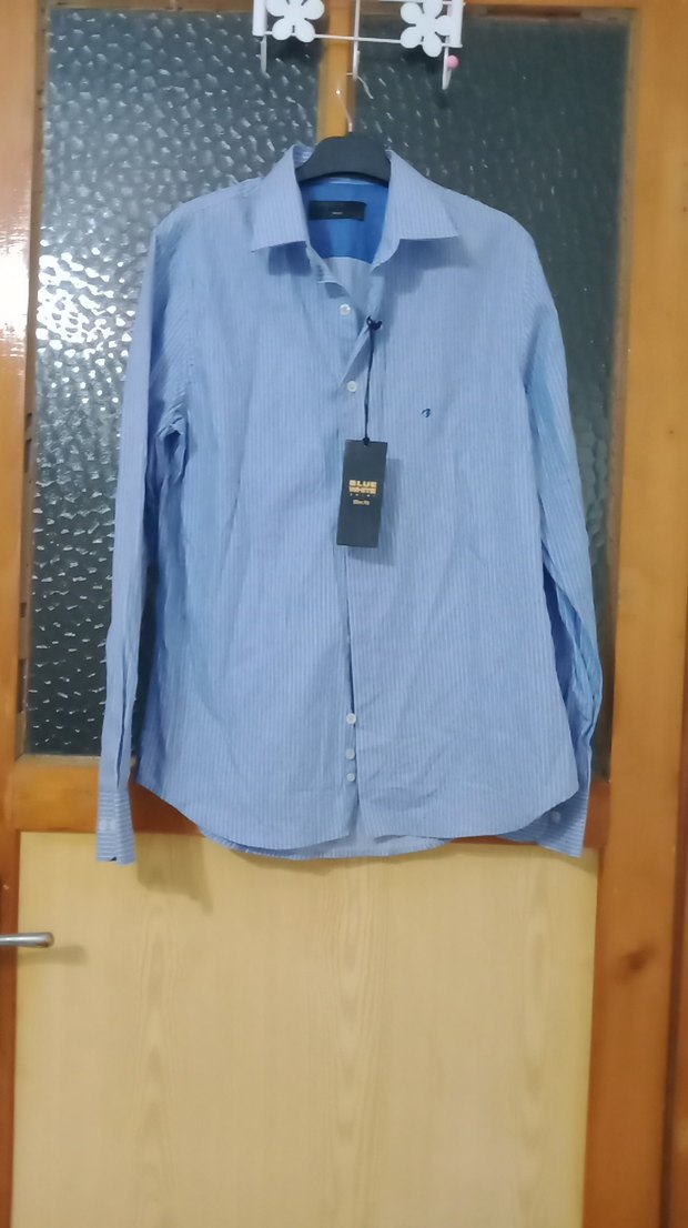 Mavi renkte, uzun kollu, düğmeli ve yakalı denim gömlek. Normal boyda ve regular fit kesimdedir. Ofis ve günlük sokak tarzına uygundur. ✨