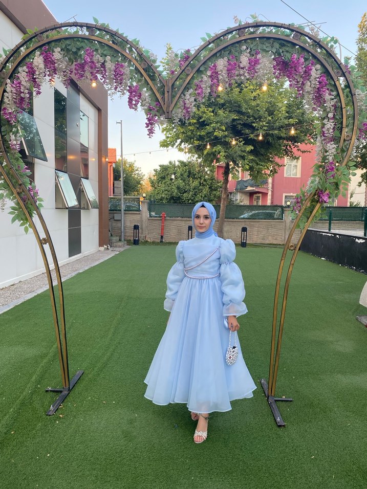 Mavi Uzun Kollu Drapeli Tesettür Abiye