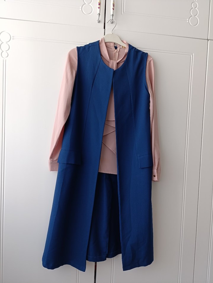 Mavi Uzun Kollu Drapeli Yelek ve gömlek