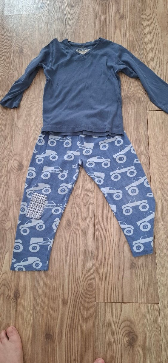 Mavi uzun kollu, bisiklet yaka üst ve araba desenli mavi pantolonlu erkek çocuk takımı. Pantolonda düğmeli detay ve yama bulunur, yumuşak pamuklu benzeri kumaştan yapılmıştır. 2 3 yaş için uygun