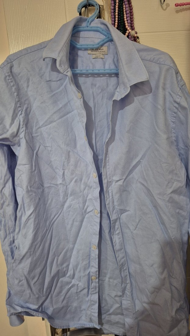 Az kullanılmış kalın kışlık slim fit gömlek Mavi renkli kumaştan üretilmiş, düğmeli ve uzun kollu, erkek gömlek. Günlük ve sokak tarzı için uygundur.