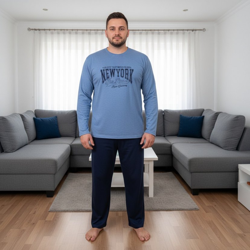 Mavi Uzun Kollu Erkek Pijama Takımı