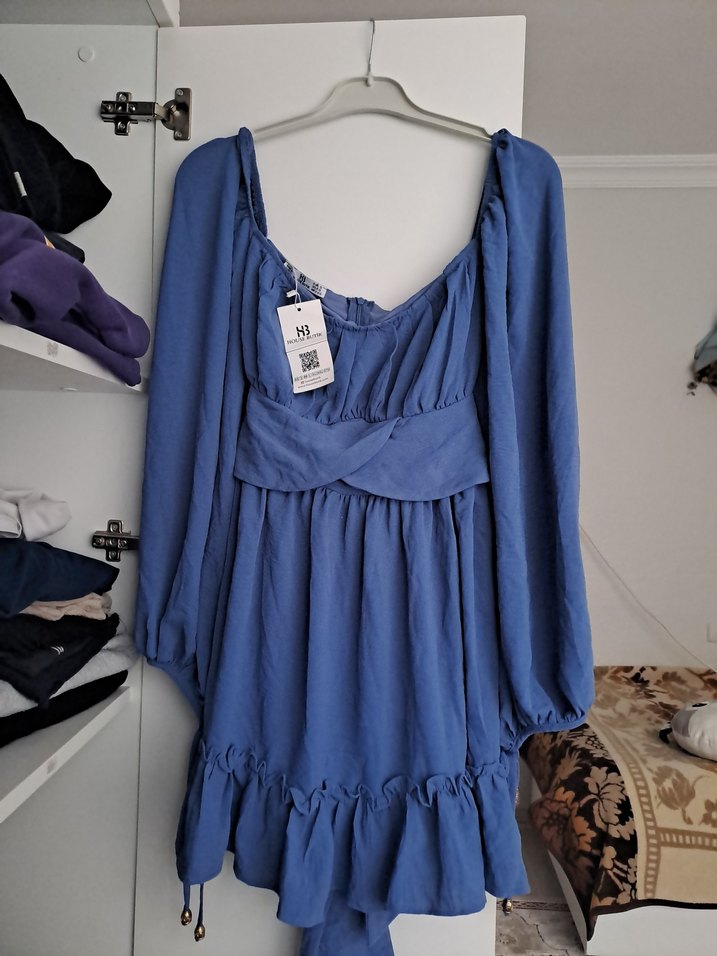 Mavi Uzun Kollu, Fırfırlı Bohem Elbise