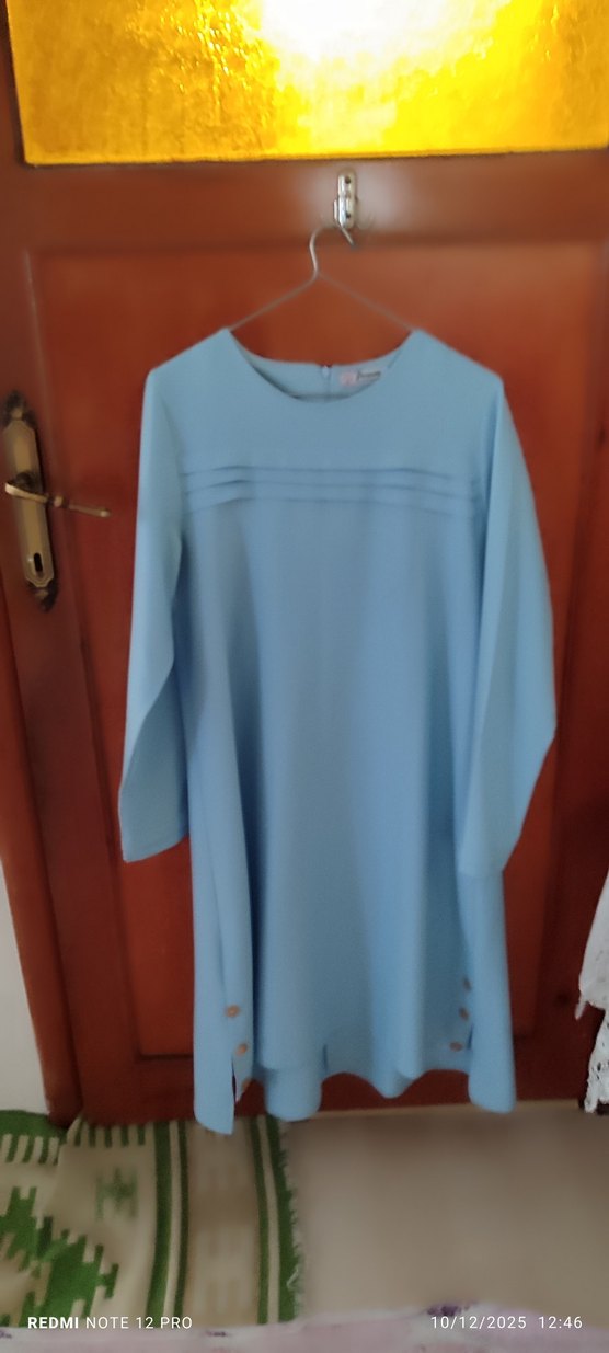 Pastel mavi renkte, uzun kollu ve bisiklet yaka kadın tunik. Dökümlü tasarımı ve rahat kesimiyle günlük kullanıma uygundur.