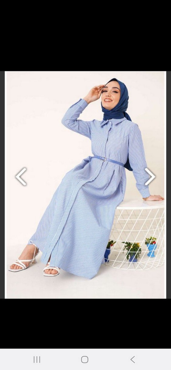 Mavi Uzun Kollu Kemerli Kadın Elbise