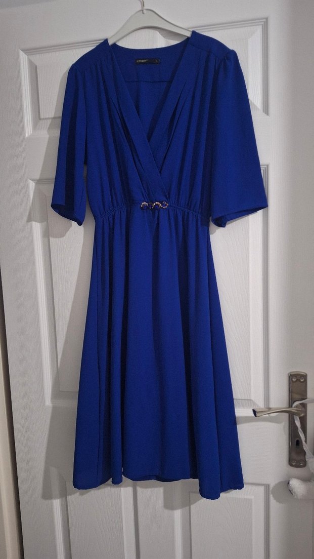 Mavi Uzun Kollu Kemerli Kadın Elbise M ,L uyumlu