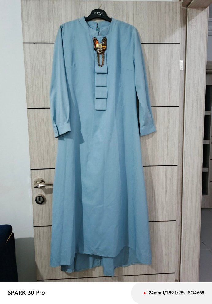 Mavi renkte, yakalı ve uzun kollu, dökümlü kesime sahip uzun elbise. Pastel tonları ve nakış detayları minimal bohem tarzını yansıtıyor. Sentetik kumaştan, modest ve regular fit, günlük kullanıma uygun.