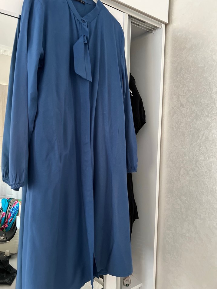 Koyu mavi renkte, uzun kollu, salaş kesimli ve Minimalist ve desensiz tasarımıyla günlük kullanıma uygundur.boy 95 cm 38 beden