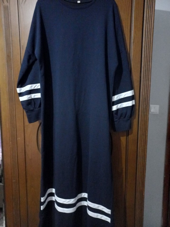 Uzun kollu, yuvarlak yakalı, rahat kesim mavi elbise. Yumuşak ve sıcak kumaştan, kollarında ve etek ucunda beyaz şeritler bulunur.. kullanıldı fakat hiçbir problemi yok. ölçüler resimde mevcut. şu anki güncel fiyatı 2000 tl civarı Bu fiyata kaçırmayın.