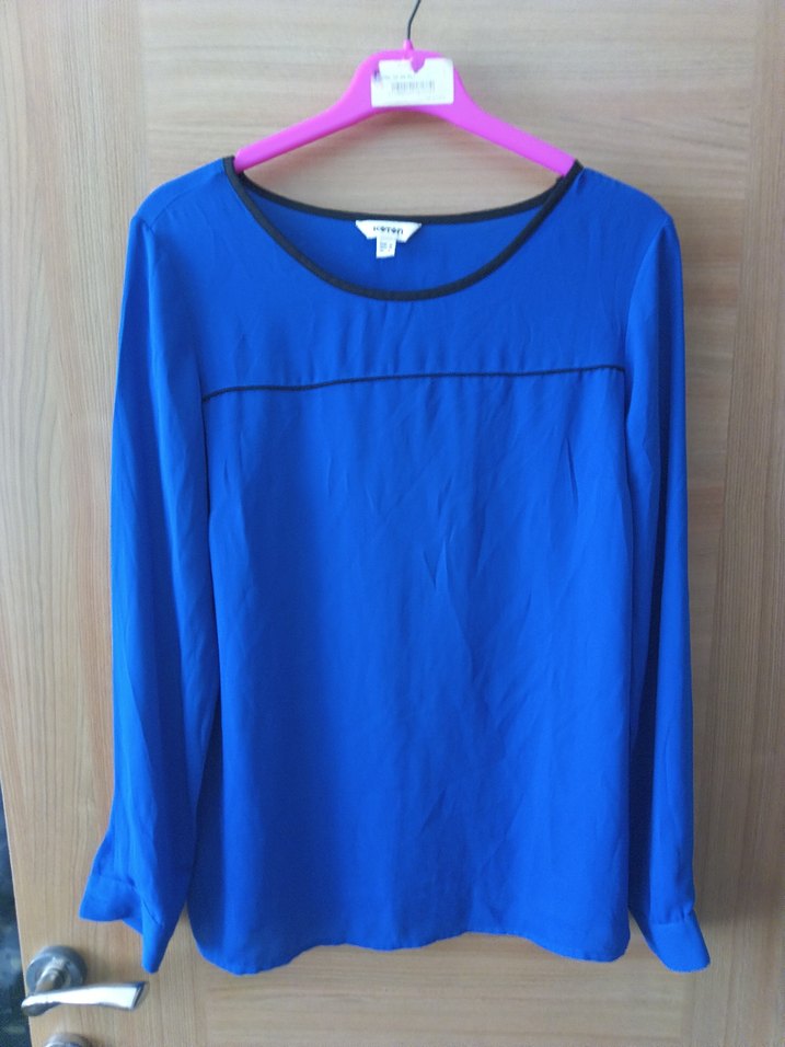 Mavi renkli, yuvarlak yakalı, uzun kollu kadın bluz. Salaş kesimli ve drapeli tasarıma sahip, normal midi boyunda, sentetik kumaştan üretilmiştir. Minimalist sokak stiline uygun, düz ve desensiz modeldir.