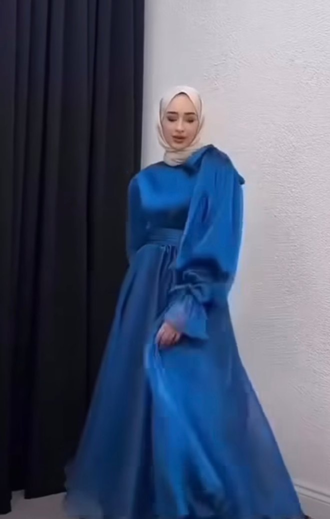 Mavi Uzun Kollu Salaş Kadın Elbise