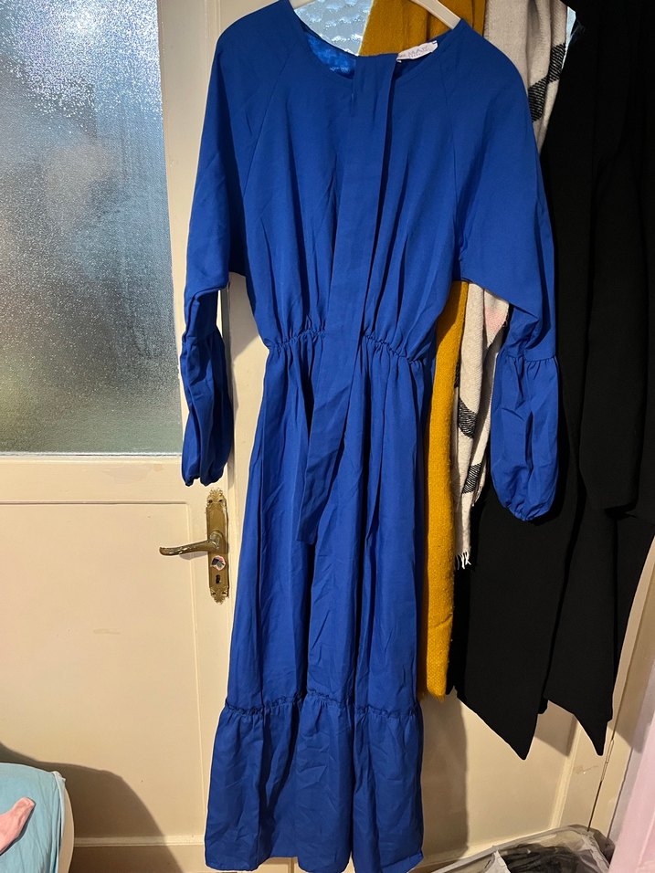 Mavi Uzun Kollu Salaş Kadın Elbise