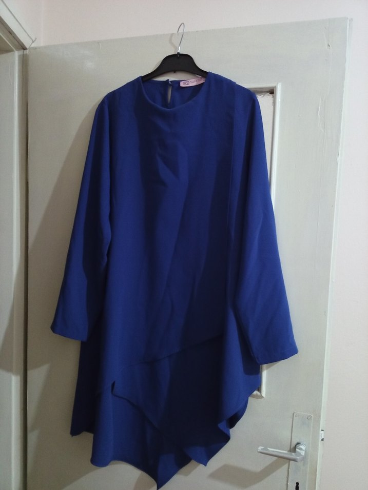 Uzun kollu, salaş kesim ve drapeli tasarıma sahip koyu mavi tunik. Yuvarlak yaka ve sentetik kumaştan, minimal günlük kullanım için uygun. 1 kez giyildi tertemiz defosu yok fazlalık olduğu için satıyorum marka temsili
