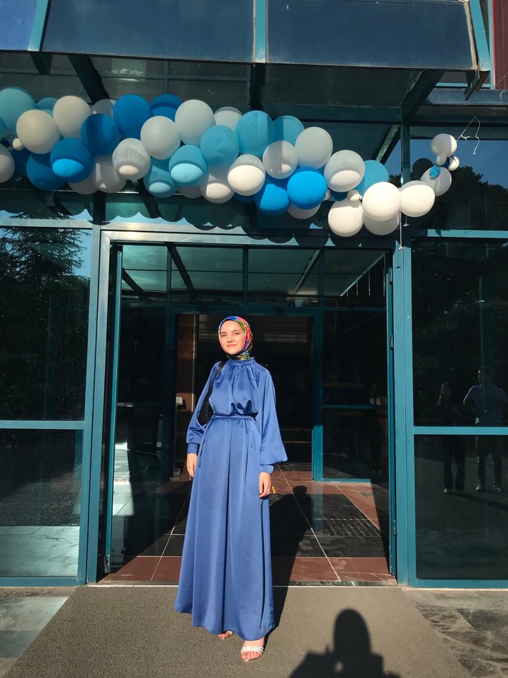 Mavi Uzun Kollu Tesettür Mezuniyet Elbisesi