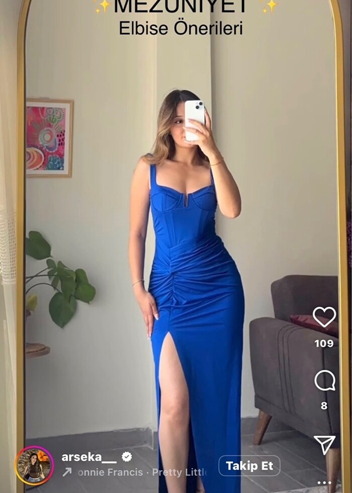 Mavi uzun korseli elbise (balo,mezuniyet düğün vb.)