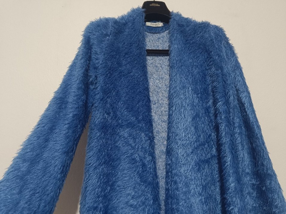 Mavi Uzun Peluş Kadın Hırka