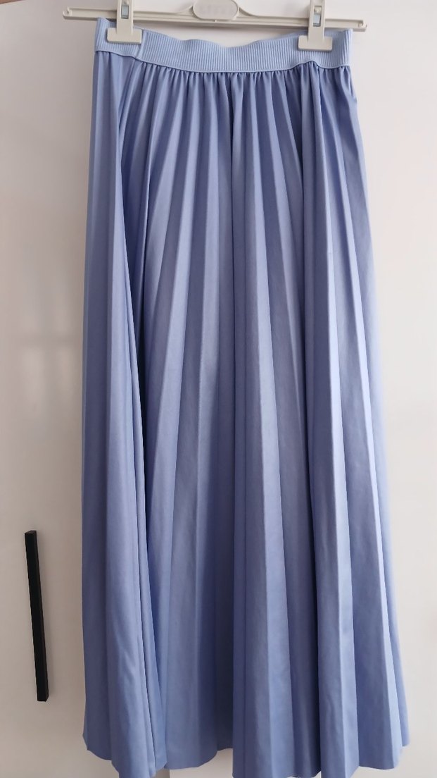 Lastik kısmında deformasyonu var görsellerde belirttim. Mavi renkte, pilili uzun kadın eteği, yumuşak sentetik kumaştan ve regular fit kesime sahip. Paris tarzı, günlük kullanıma uygun sade tasarım.