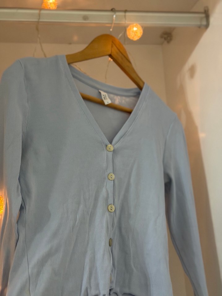 Gri renkte, V yakalı ve düğmeli hırkadır.Uzun kollu ve bol kesimdir, nefes alabilen keten kumaştan yapılmıştır, günlük kullanıma uygundur.