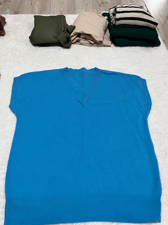 Mavi V Yaka Kadın Süveter