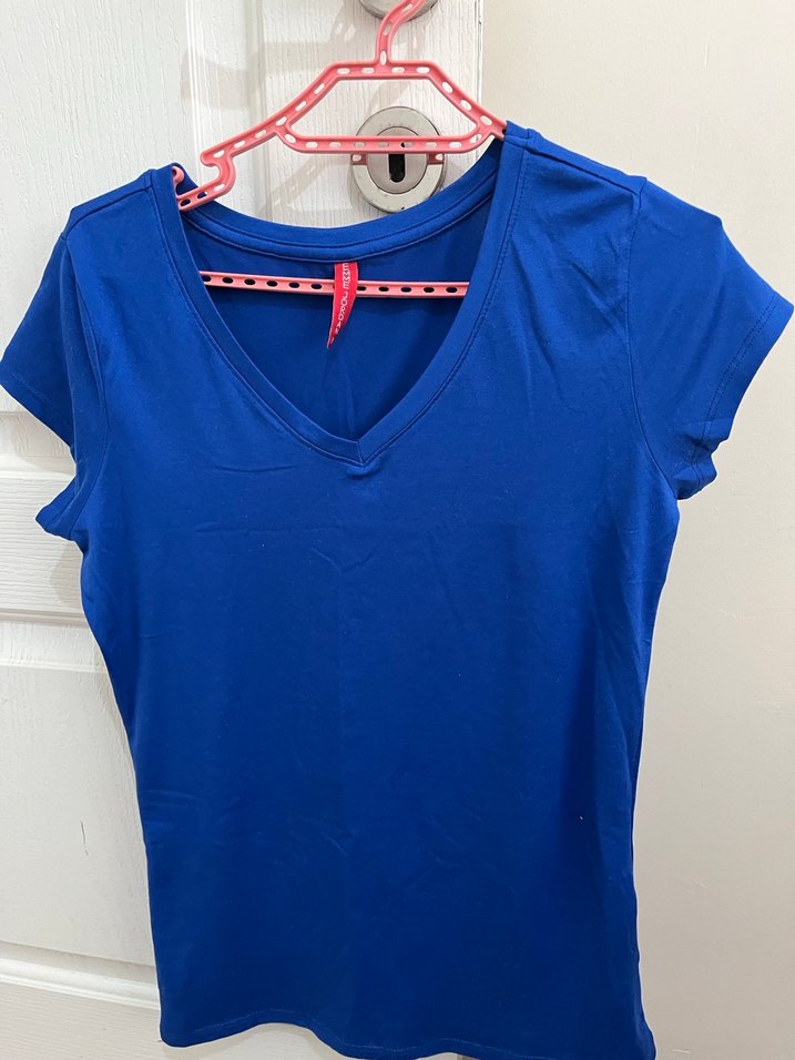 Mavi V Yaka Kadın Tişört