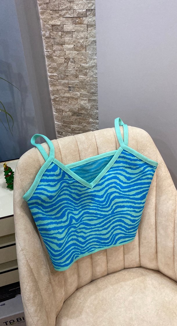 Mavi V Yaka Örgü crop