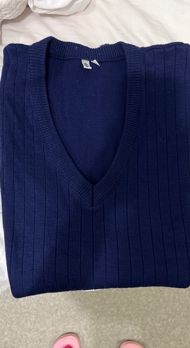 Mavi V Yaka Örgü Oversize Kadın Süveter