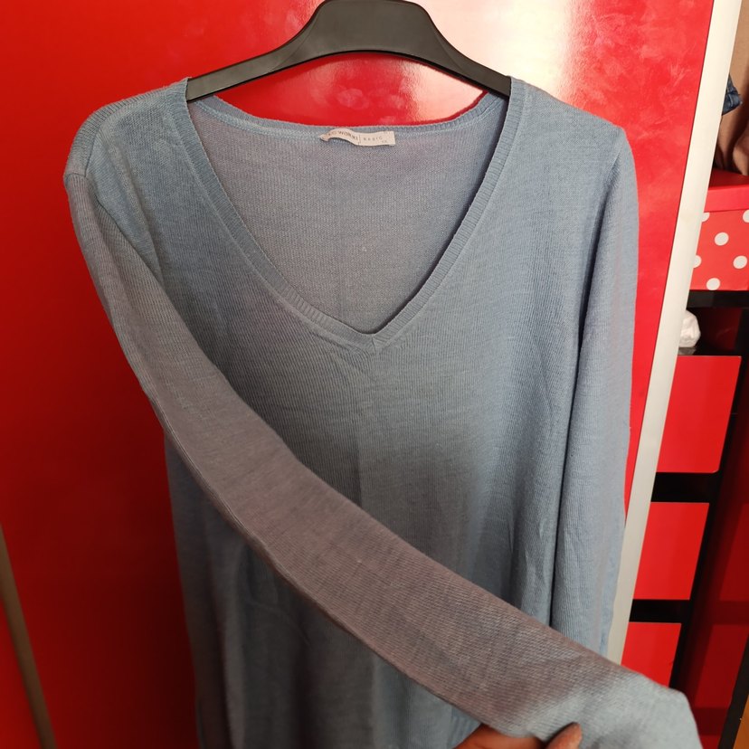 mavi V Yaka Uzun Kollu Triko Kadın Kazak