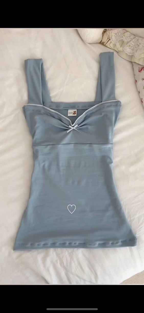 Fitted kesim, V yakalı ve kolsuz mavi kadın atlet. Yumuşak sentetik kumaştan, sade ve midi boyda, günlük ve sokak stili için uygundur.