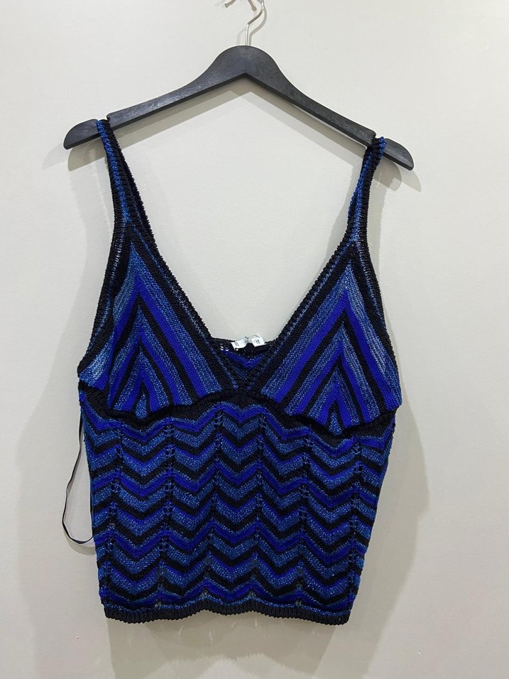 Mavi V Yakalı Örgü İnce Askılı Mini Atlet