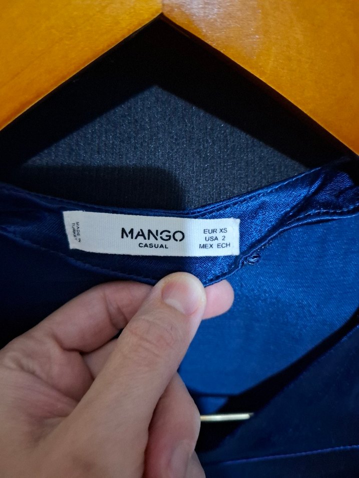 Mavi, parlak, saten kumaştan, V yakalı ve uzun kollu, drapeli bohem tarzında, midi boy, dar kesim elbise